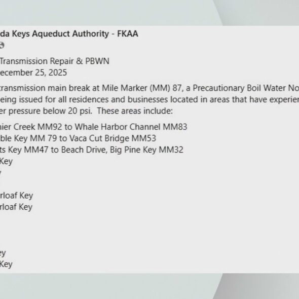 . December 28, 2025 Some Florida Keys residents still under boil water notice after water main break gets repaired